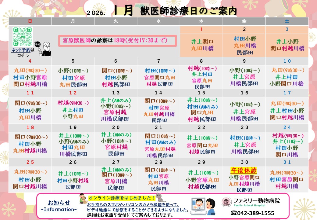 詳細は「年末年始診療時間変更のお知らせ」を併せてご覧ください。